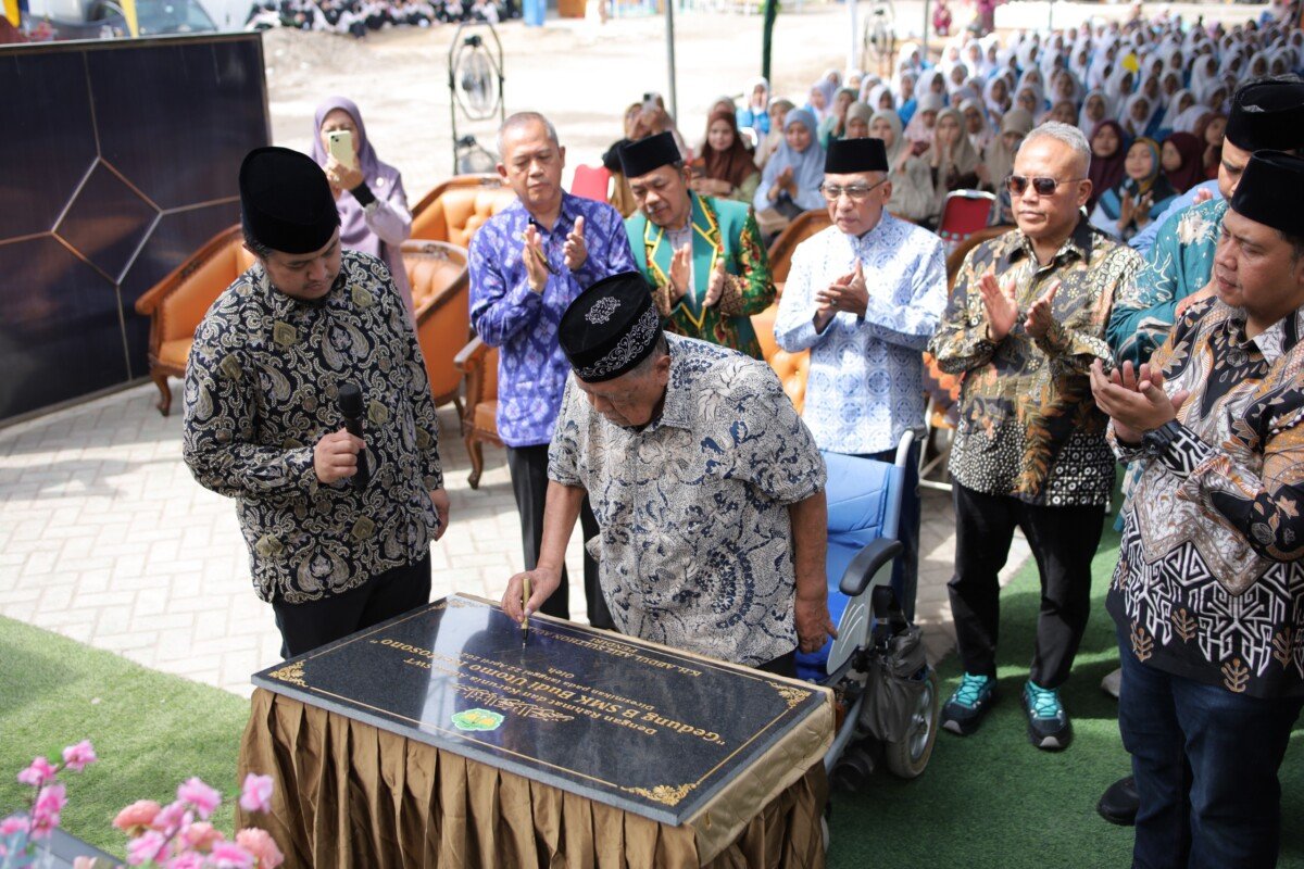 Kiai Sepuh Pondok Pesantren (Ponpes) Al Ubaidah, KH Abdul Aziz Sulthon Aulia, meresmikan Gedung B SMK Budi Utomo Kertosono, Nganjuk, Jawa Timur, pada Rabu (22/4/2026). Seremoni peresmian ditandai dengan penandatanganan prasasti sebagai simbol peresmian penggunaan gedung baru tersebut. Peresmian ini menjadi upaya SMK Budi Utomo Kertosono, untuk terus membenahi fasilitas dengan tujuan menciptakan lingkungan belajar mengajar yang nyaman bagi siswa maupun tenaga pendidik.