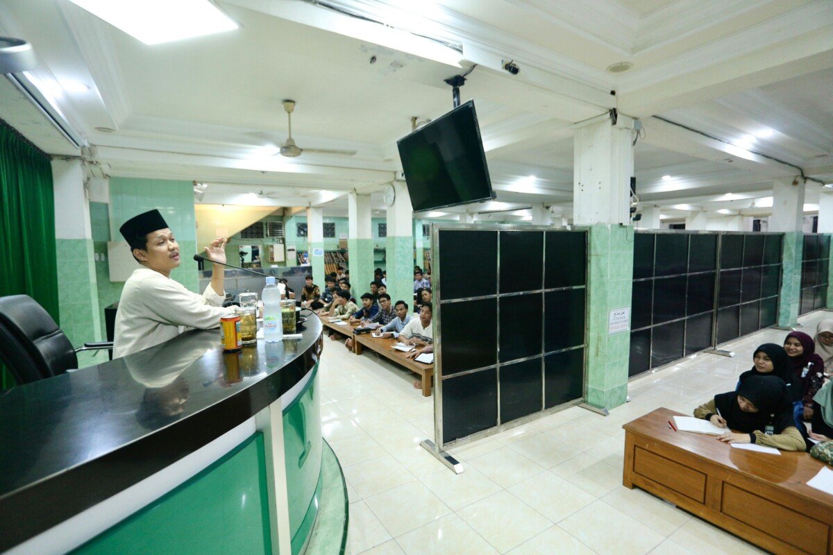 Para santri Pondok Pesantren (Ponpes) Al Ubaidah bersama generasi muda LDII di Kertosono mengikuti pembekalan agama. Materi pembekalan tersebut dibawakan Ust. Mochammad Rozan Ubadah, salah satu pengajar di Ponpes Al Ubaidah Kertosono, Nganjuk, Jawa Timur, pada Sabtu (11/04/2026).