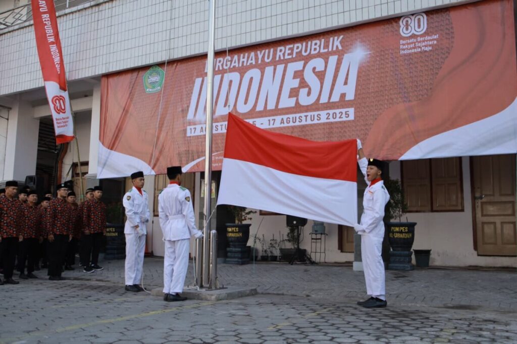Nganjuk (19/8). Pondok Pesantren Al Ubaidah menggelar upacara memperingati Hari Ulang Tahun (HUT) ke-80 Kemerdekaan Republik Indonesia. Upacara tersebut berlangsung di halaman Pondok Pesantren Al Ubaidah, Kertosono, Nganjuk, Jawa Timur, pada Minggu (17/8).